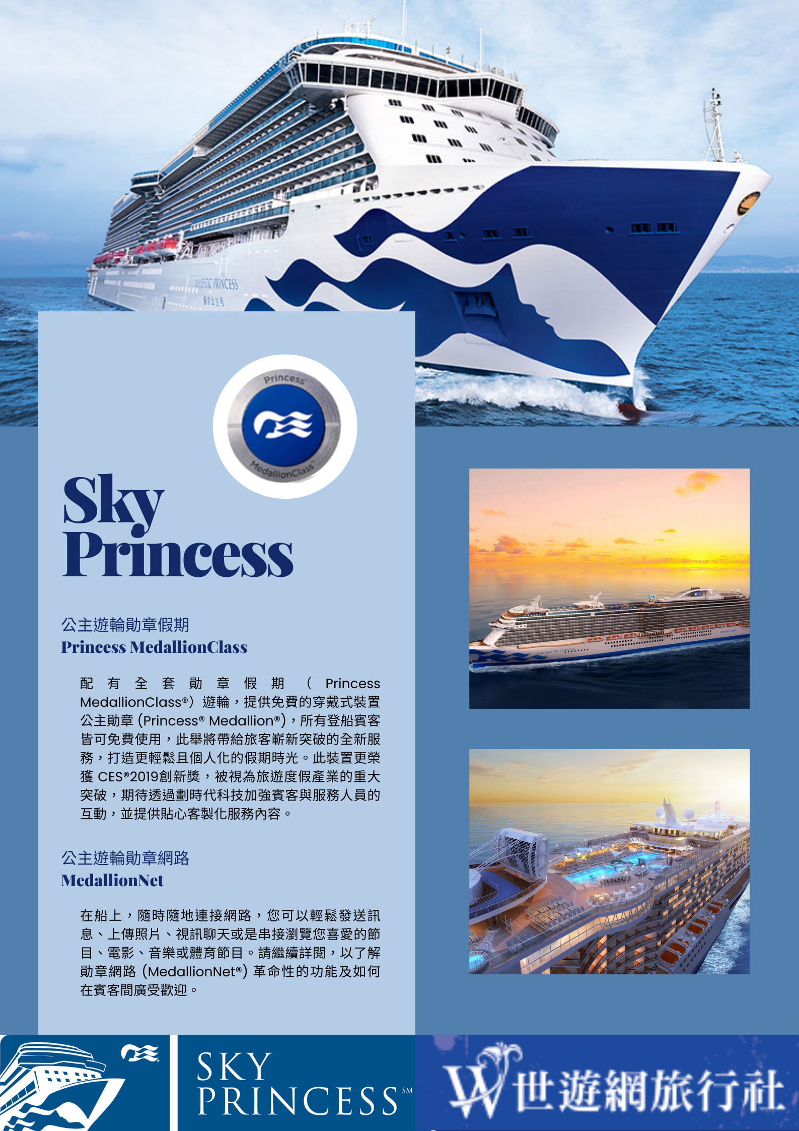 本日為海上航行,公主遊輪精選各種表演節目並提供豐富的娛樂空間,各種不同輕鬆好玩課程,讓您身、心、靈全部徹底放鬆,請盡情享受遊輪假期帶給您無限歡樂和美好時光!