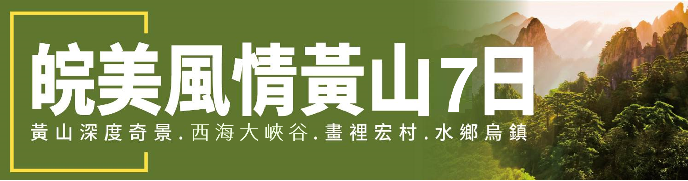 距於風景秀麗的皖南山區, 它以「三奇四絕」的奇異風采名冠於世。1982年黃山被國務院列為首批國家級 重點風景名勝區,1986年經評選列入中國十大風景名勝區,1990年被聯合國教科文組織列入「世界遺產」名錄。黃山是以自然景觀為特色的山嶽旅遊風景區,奇松、怪石、雲海、溫泉素稱黃山「四絕」,令海內外遊人歎為觀止。
