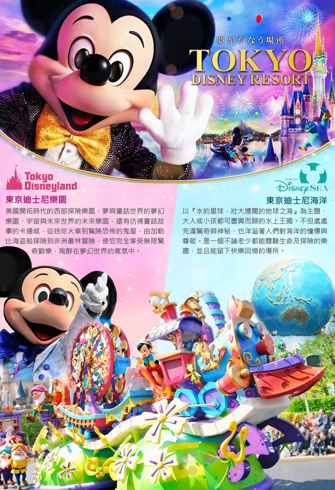 ※若欲(迪士尼樂園、迪士尼海洋世界)皆遊玩者,另行加買門票。
