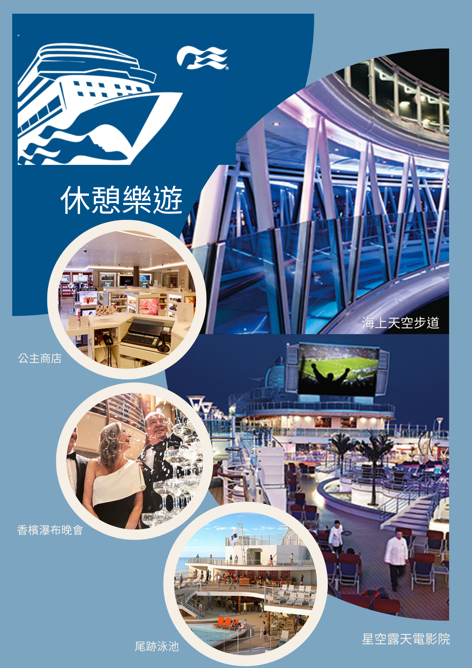 本日為海上航行,公主遊輪精選各種表演節目並提供豐富的娛樂空間,各種不同輕鬆好玩課程,讓您身、心、靈全部徹底放鬆,請盡情享受遊輪假期帶給您無限歡樂和美好時光!