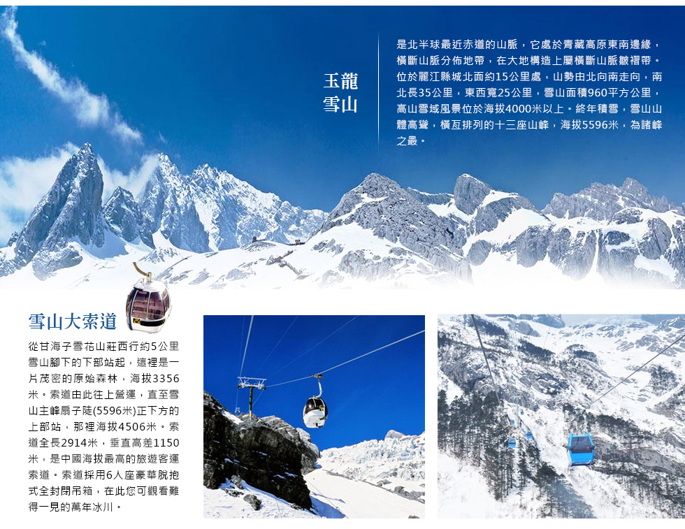 玉龍雪山冰川大索道含雪衣氧氣