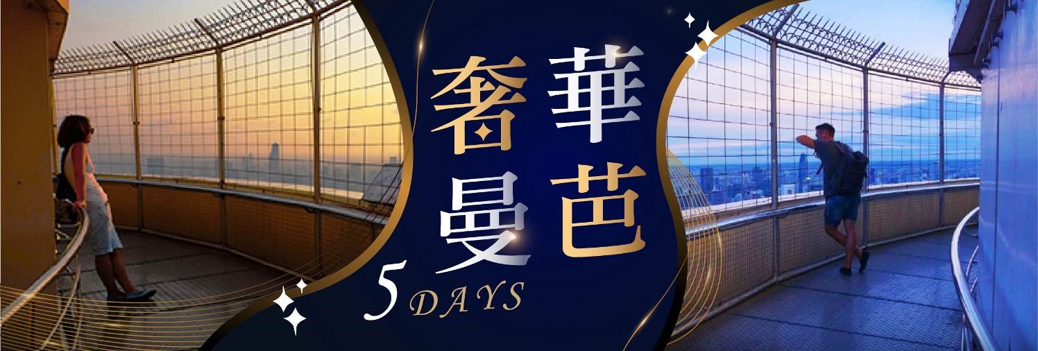 奢華曼芭.彩虹雲霄自助餐+高空景觀台.蒂芬妮人妖秀5日